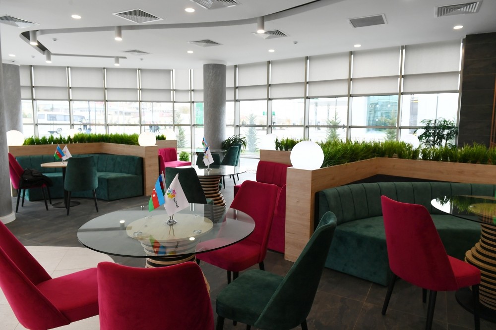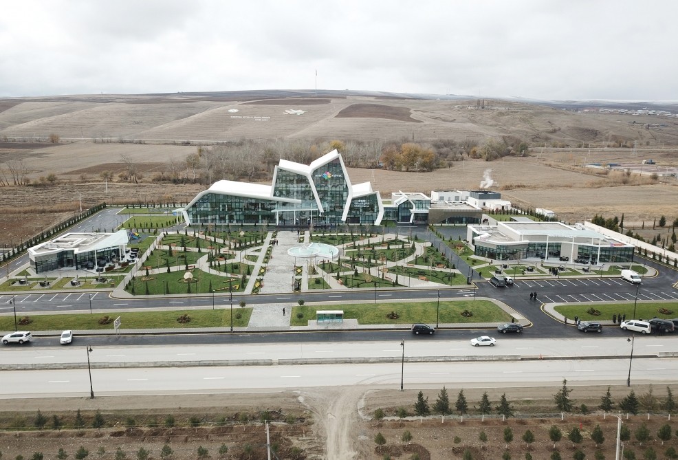 Dövlətimizin başçısı kompleksin rəmzi açılışını bildirən lenti kəsib.