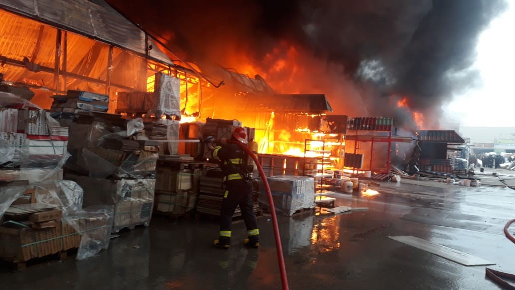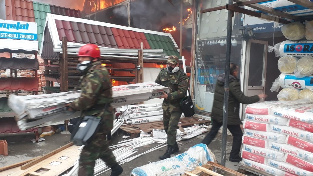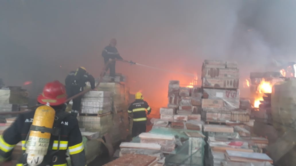 Fövqəladə Hallar Nazirliyinin "112" qaynar telefon xəttinə, Bakı şəhərinin Binəqədi rayonunda “EuroHome” tikinti materialları bazarı ərazisində yanğın olması barədə məlumat daxil olub.