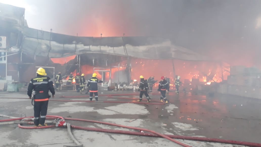 Bakı şəhəri Binəqədi rayonu ərazisində yerləşən "EuroHome” tikinti materialları bazarında baş verən yanğının söndürülməsinə Fövqəladə Hallar Nazirliyinin əlavə qüvvələri və 3 helikopteri cəlb olunub.