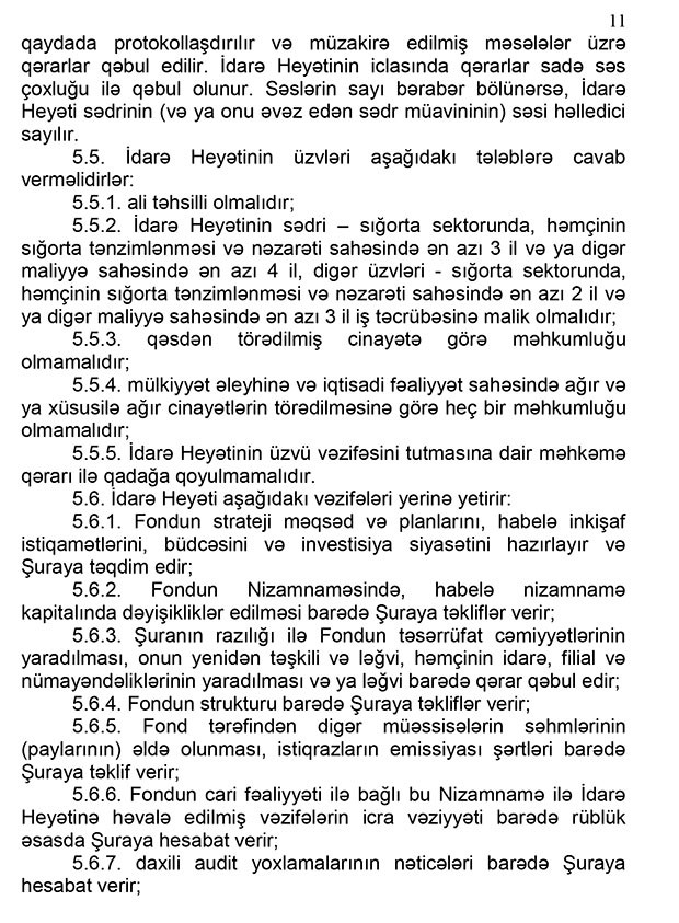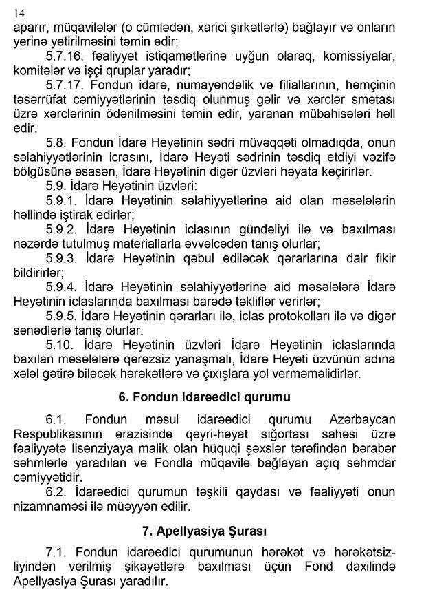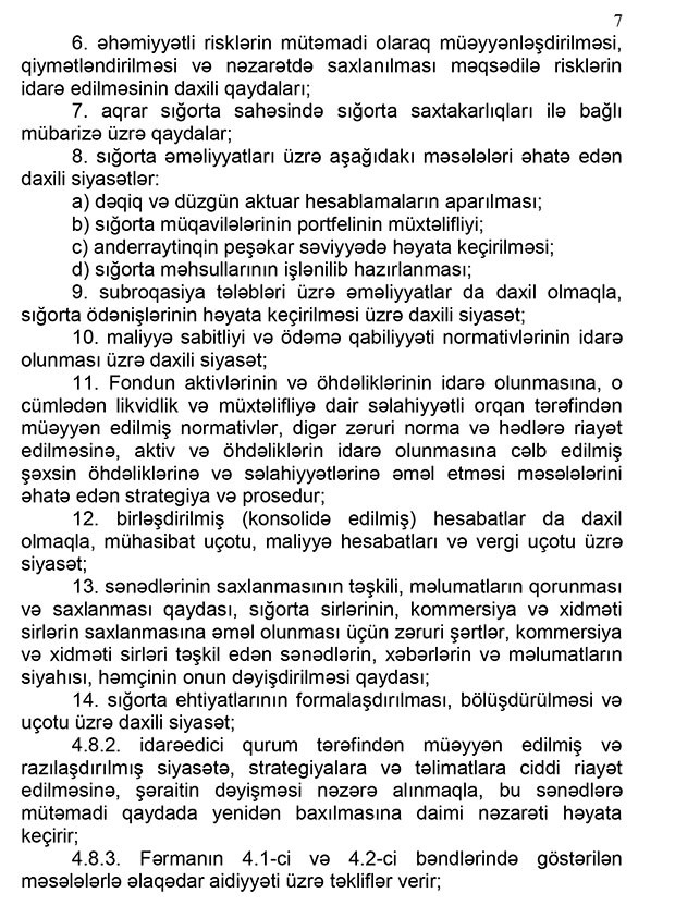 “Marja” xəbər verir ki, Qərar ilə “Aqrar Sığorta Fondunun Nizamnaməsi” təsdiq edilib.