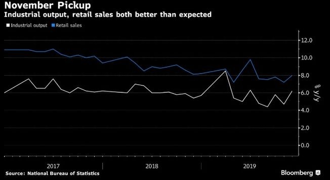 Çində sənaye istehsalı və pərakəndə satışlar Noyabr ayında proqnozlardan çox artıb, bu, iqtisadiyyatda toparlanma olduğu siqnalları verir.