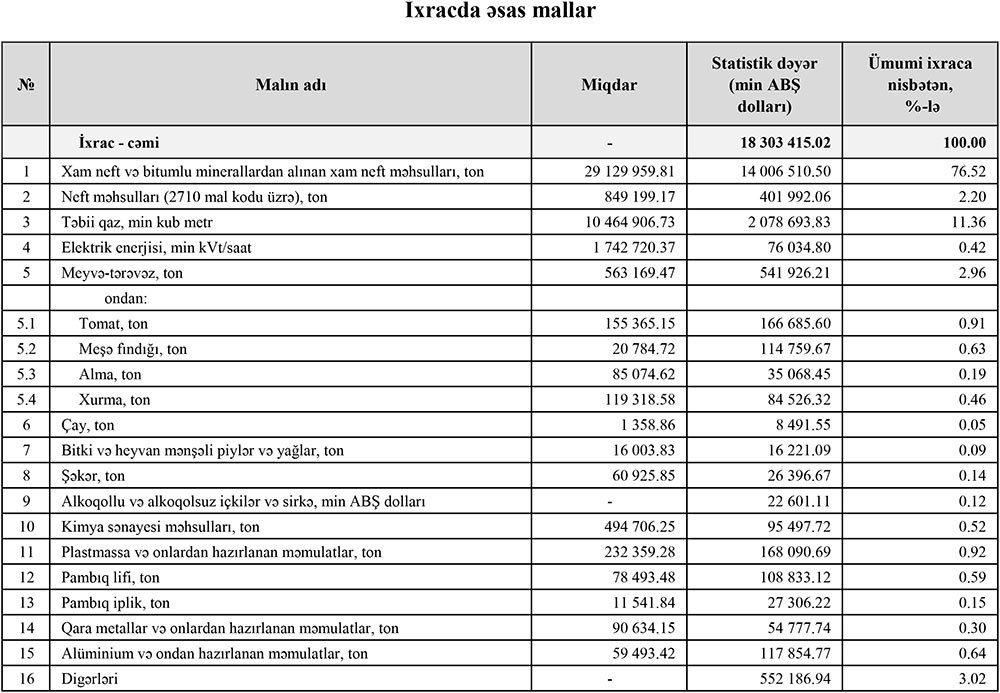 Ən çox ixrac və idxal etdiyimiz mallar - SİYAHI