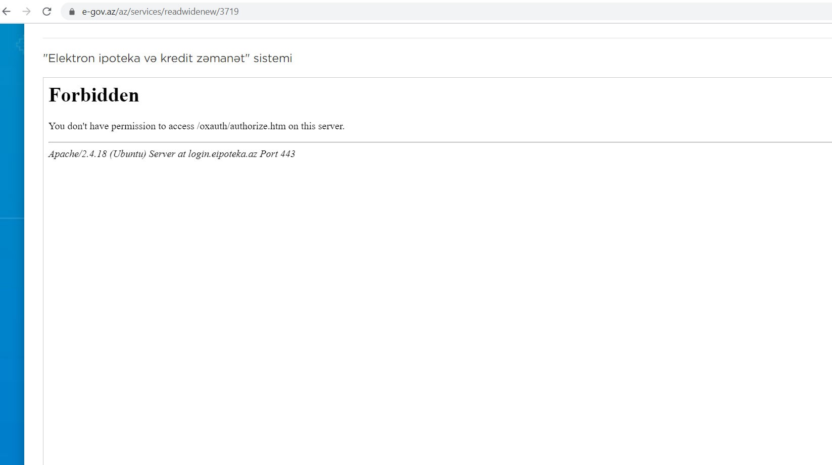 "Marja" xəbər verir ki, saat 10:00-a az qalmış "Elektron ipoteka və kredit zəmanət" sisteminə daxil olmaq mümkün olmayıb.