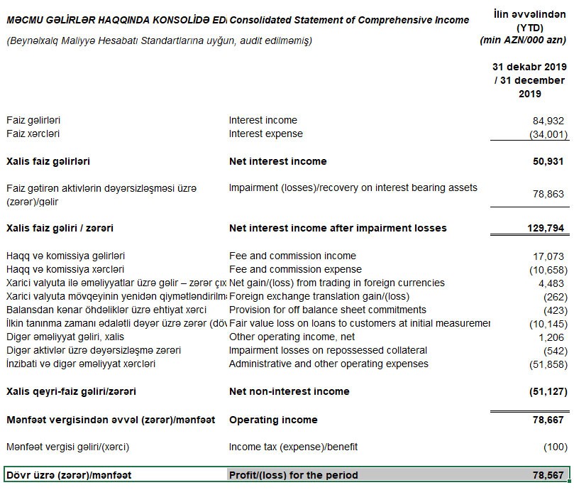 Müqayisə üçün qeyd edək ki, 2018-ci ildə ehtiyatdan gəlir nəzərə alınmadan “Unibank”ın cəmi gəlirləri 90 milyon 732 min manat, cəmi xərcləri isə 84 milyon 204 min manat, əməliyyat mənfəəti isə 6 milyon 528 min manat təşkil etmişdi. Ehtiyatdan 23 milyon 815 min manatın geri qayıtması hesabına mənfəət 30 milyon 300 min manata yüksəlmişdi.