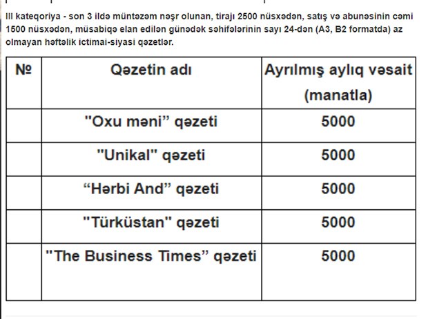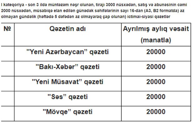 Qeyd edək ki, Fondun yaydığı hesabatda maliyyə vəsaiti ayrılan qəzetlərin adları açıqlanmayıb.