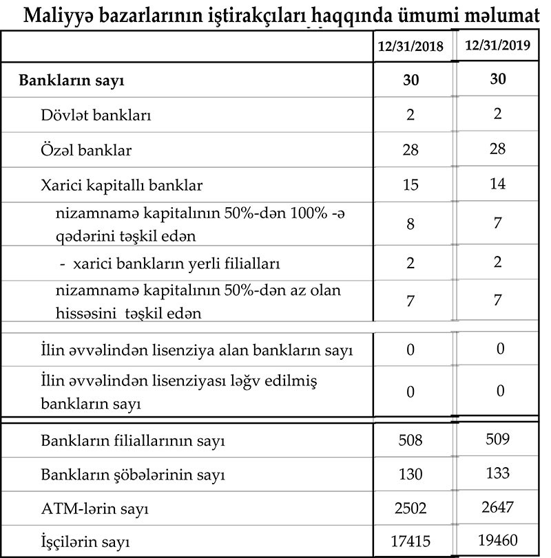 Marja Mərkəzi Banka istinadən 2019-cu ilin sonuna Bank sektoruna dair bir sıra statistikaları təqdim edir