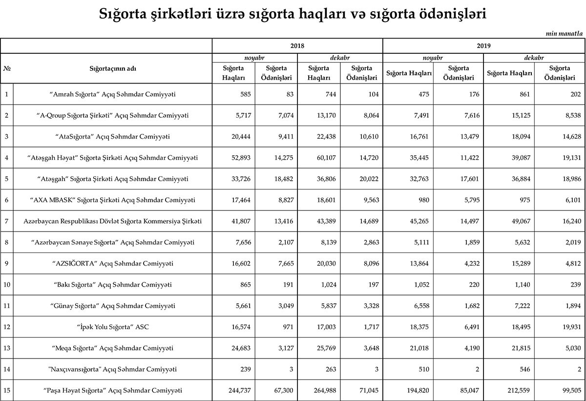 Sığorta şirkətləri üzrə haqlar və ödənişlər - SİYAHI