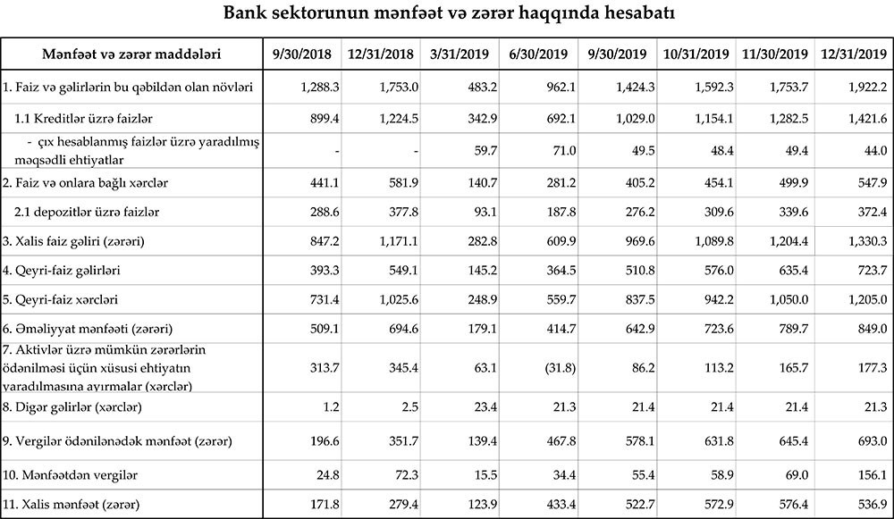 Banklar kreditlərdən nə qədər qazanıb?