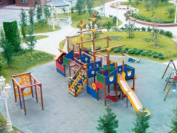 Kompleksin ağaclar, gül kolları, çiçəkli çəmənlərlə zəngin olan xüsusi landşaft dizayna malik 1,5 hektarlıq həyəti sakinlərinin rahat istirahəti üçün nəzərdə tutulub. Burada qaçış və velosiped zolağı, idman meydançaları, uşaq əyləncə zonası olan əsl qapalı park salınıb. “Renessans Palace”ın sakinləri kompleksdən kənara çıxmadan da onlar üçün yaradılan geniş həyətyani sahədə - parkda həm özlərinin, həm də uşaqlarının asudə vaxtlarını səmərəli keçirə bilirlər.