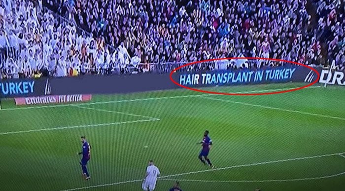 1 Mart Bazar günü İspaniyada Real Madrid ilə Barcelona klubları arasında futbol qarşılaşmasında pannolarda çıxan bir reklam diqqət çəkib. Yüz milyonlarla adamın izlədiyi matçda, stadiondakı pannolarda saç əkilməsi ilə məşğul olan bir Türkiyə şirkətinin reklamı göstərilib.