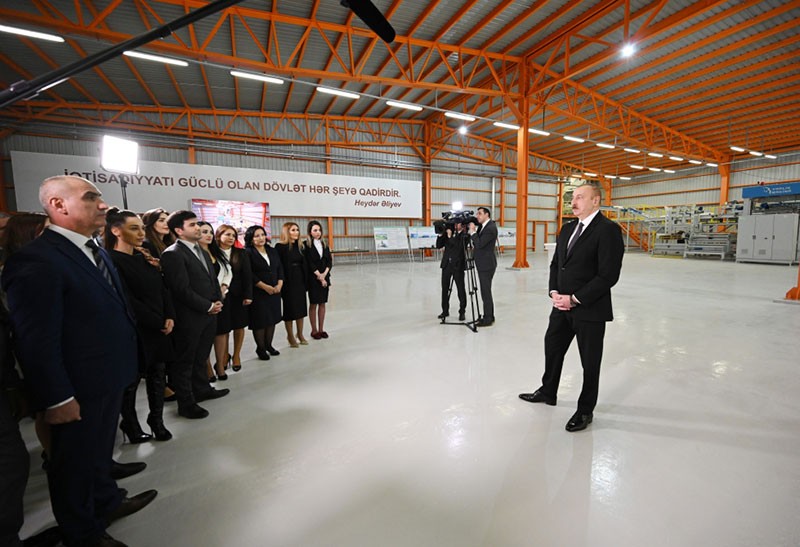 Bu gün bu zavodun açılışı bir daha onu göstərir ki, ölkəmizdə düzgün iqtisadi siyasət aparılır. Biz sahibkarlıqla bağlı görülən tədbirlərin real nəticəsini görürük. Çünki bizim iqtisadiyyatımız özəl sektor hesabına inkişaf etməlidir. Dövlət, sadəcə olaraq, şərait yaratmalıdır, infrastruktur layihələri həyata keçirməlidir ki, sahibkarlar da bu işlə həvəslə məşğul olsunlar.