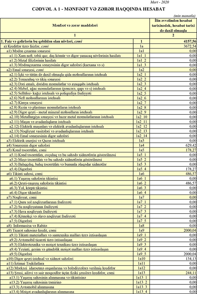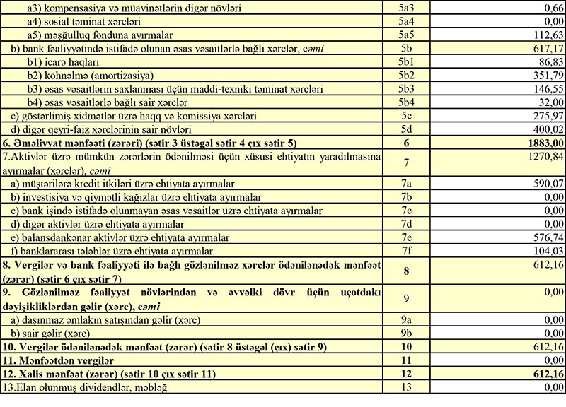 Xatırladaq ki, 2019-cu ilin yanvar-mart dövründə “Ziraat Bank Azərbaycan”ın cəmi gəlirləri 5 milyon 138 min manat, cəmi xərcləri isə 3 milyon 228 min manat təşkil etmiş, nəticədə Bankın 1 milyon 910 min manat əməliyyat mənfəəti yaranmışdı. Bank əməliyyat mənfəətinin 951 min manatını aktivlər üzrə mümkün zərərlərin ödənilməsi üçün xüsusi ehtiyatın yaradılmasına ayırdığından mənfəəti 959 min manata düşmüşdü.
