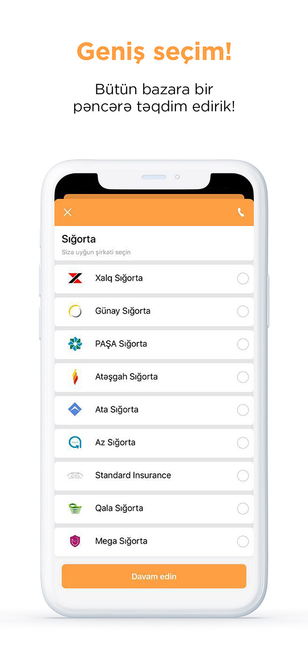 1) İstifadəçilərin rahatlığını düşünərək innovativ həllər verən mobil əlavə bütün sığorta bazarına bir pəncərə açaraq geniş seçim təqdim edir. Buradan zövqünüzə uyğun sığorta şirkətini, cibinizə uyğun isə məhsul seçə bilərsiniz.