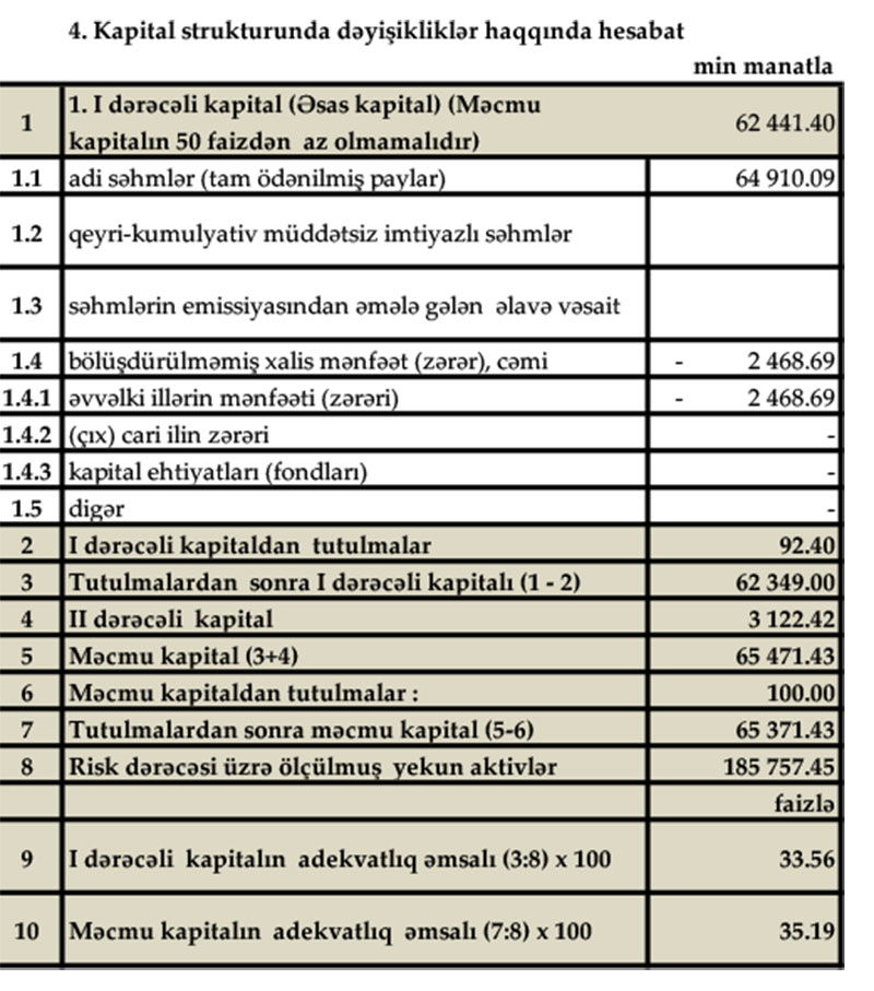 Müqayisə üçün qeyd edək ki, 2019-cu ilin ilk rübündə GünayBankın cəmi əməliyyat gəlirləri 4 milyon 359 min manat, cəmi əməliyyat xərcləri 3 milyon 878 min manat, əməliyyat mənfəəti 481 min manat təşkil etmişdi. Bank mümkün zərərlər üçün yaradılan məqsədli ehtiyata 91 min manat ayırdığından mənfəət 390 min manata düşmüşdü.
