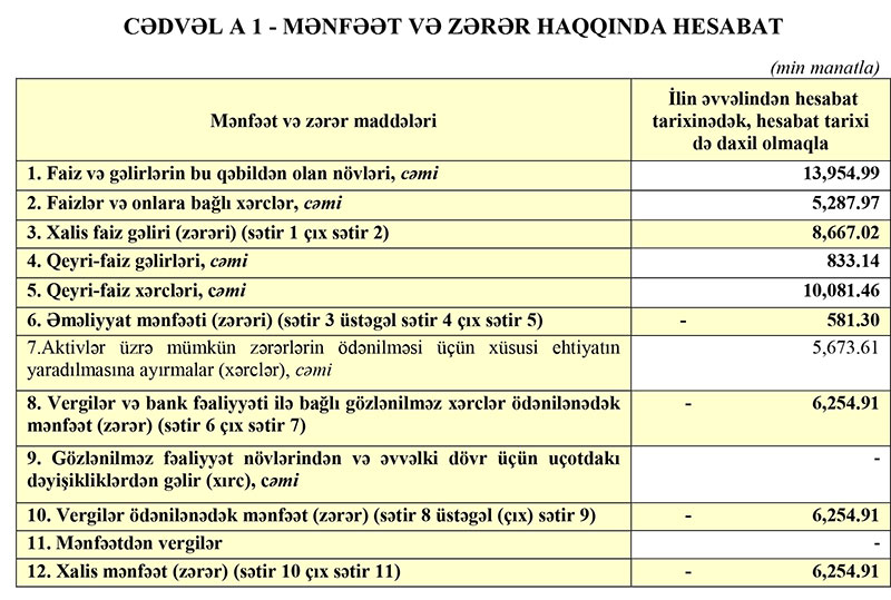“Yelo Bank” 2020-ci ilin 1-ci rübünü 6 milyon 255 min manat zərər ilə başa vurub.
