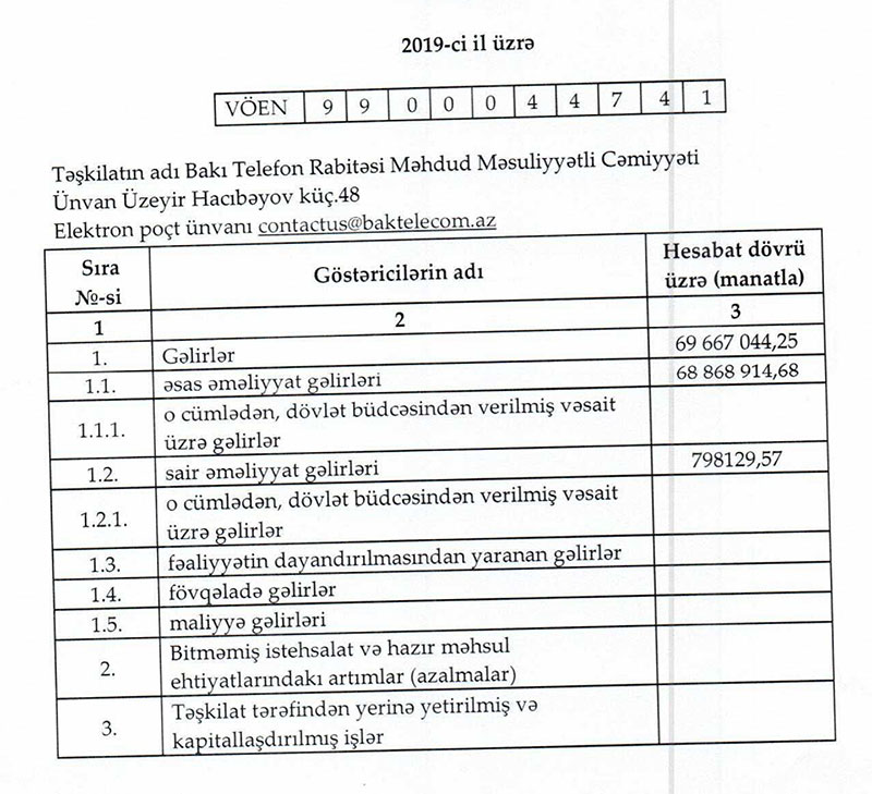 “Bakı Telefon Rabitəsi” MMC 2019-cu ili 18 milyon 74 min manat mənfəət ilə başa vurub.