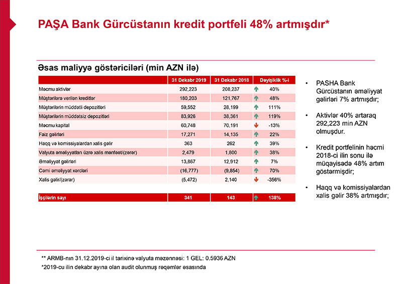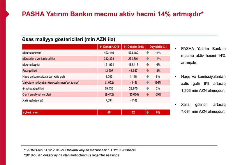 Ötən il PAŞA Bank qrupunun cəmi aktivləri 231 milyon 75 min manat aratarq 5 milyard 440 milyon 439 min manata çatıb.