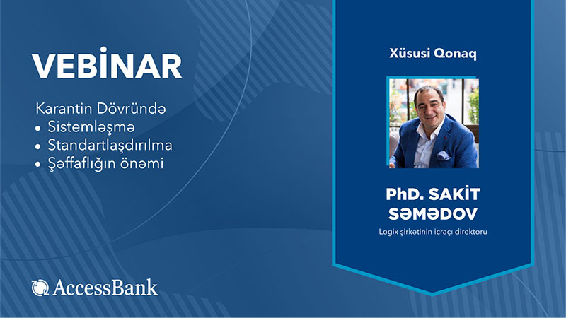 (®️) Hər zaman tərəfdaş və müştərilərini düşünən “AccessBank”, onların karantindən rahat keçid etmələri üçün vebinarlar təşkil etdi. Biznes yönümlü vebinarlar sahibkarlara pandemiya zamanı və ondan sonrakı keçid dönəmində biznesi düzgün aparmaq, pandemiyadan minimal zərərlə çıxmaq, karantin rejimi ilə əlaqədar olaraq müqavilə öhdəliklərinin icrasında yaranmış problemlərin həlli kimi mövzuları əhatə edib.