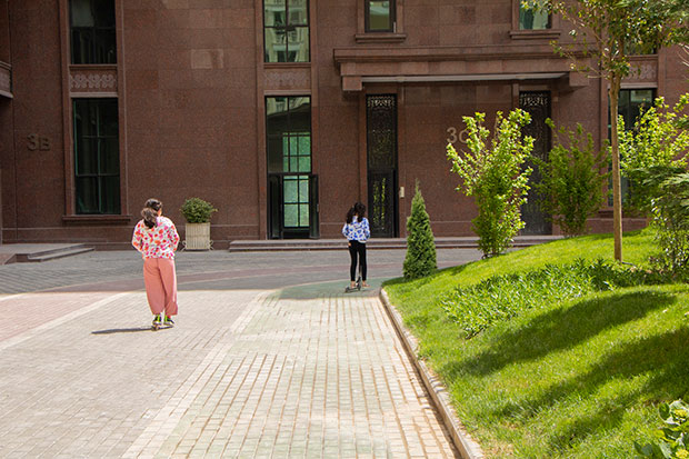 Dörd binanın həyəti kənardan girişlərə qapadılaraq yalnız sakinlərin istirahəti üçün aktiv zona kimi nəzərdə tutulub. Burada yaşıllıq, ağaclar, xüsusi qaçış və velosiped zolaqları, voleybol və basketbol meydançası, tennis kortu, uşaqlar üçün oyun meydançaları, velo parkinq əhalinin ixtiyarındadır.