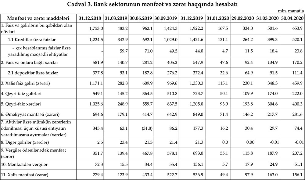 Mərkəzi Bank 30 aprel 2020-ci il tarixinə olan bank sektorunun əsas göstəricilərini açıqlayıb.