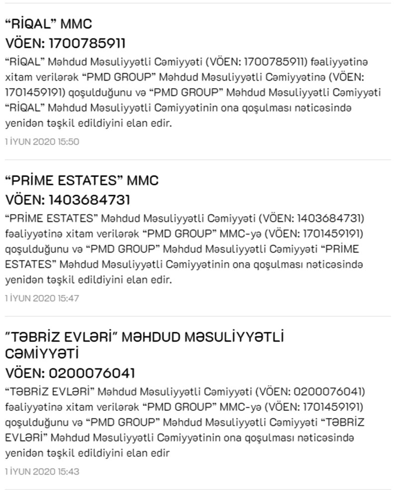 “Riqal” MMC, Prime Estates” MMC və "Təbriz Evləri" MMC Azərbaycanda iri holdinq olan “PMD Group” MMC-yə qoşulublar.
