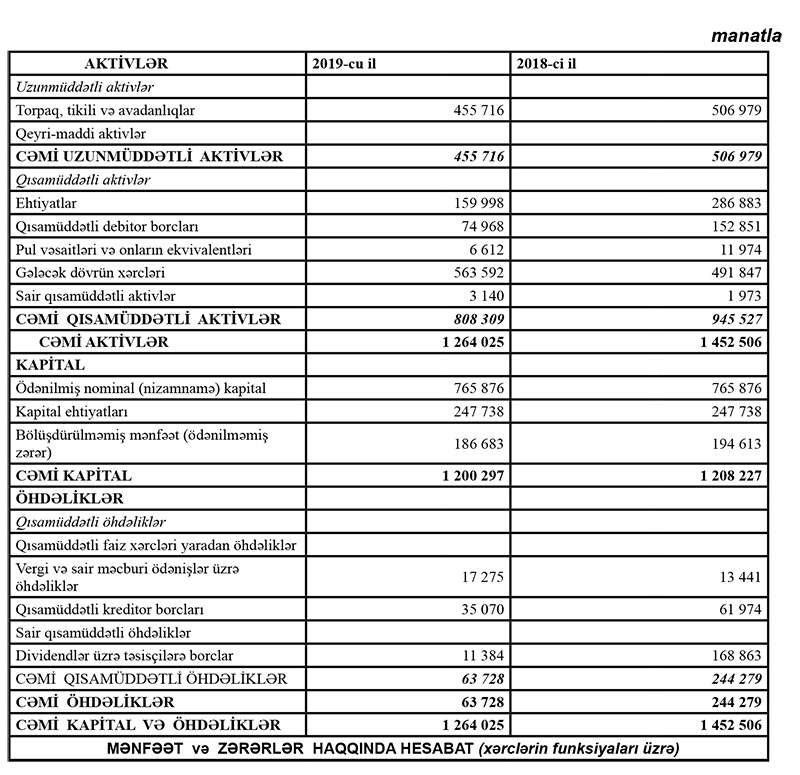 “Bakı Neft-Mədən Avadanlıqları” ASC-nin 2019-cu il dekabrın 31-nə maliyyə hesabatı