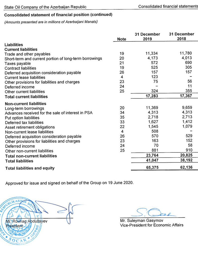 Ötən il şirkətin gəlirləri və xalis mənfəəti azalıbAzərbaycan Dövlət Neft Şirkəti (SOCAR) 2019-cu il üçün konsolidasiya edilmiş maliyyə hesabatlarını açıqlayıb.