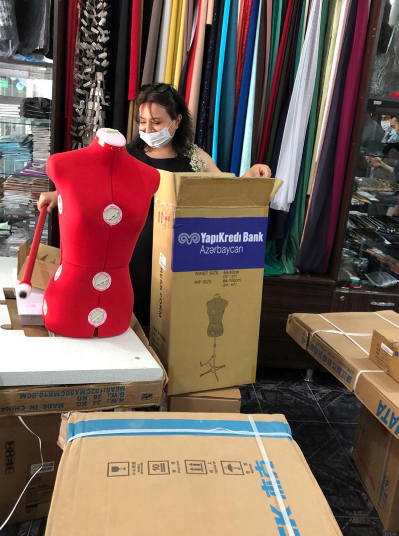 (®️) Həssas əhali qruplarının özünüməşğulluğunun təşkilinə dəstək vermək məqsədi ilə Yapı Kredi Bank Azərbaycan cari ilin iyun ayının 30-da Sumqayıt şəhərində öz dərzi atelyesini qurması üçün 2 xanıma lazım olan avadanlıqları təqdim etmişdir.