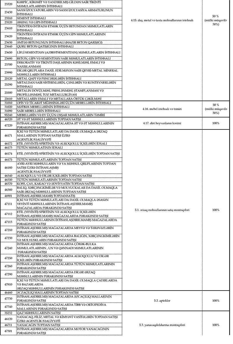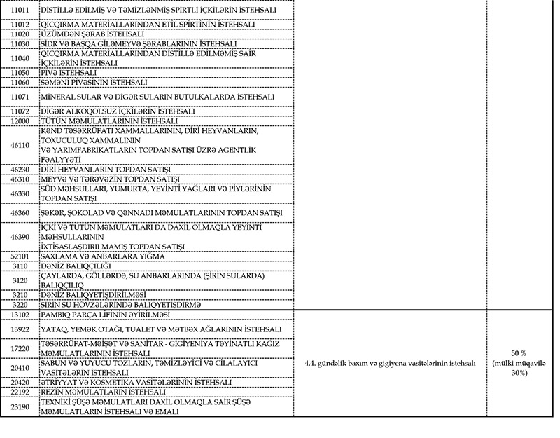 İcazə almaq üçün fəaliyyət növünüzün (5 rəqəmli kodunun) Azərbaycan Respublikasının Nazirlər Kabineti tərəfindən fəaliyyətinə icazə verilən sahələrə uyğunluğunu yoxlamalasınız (fəaliyyət sahələri və kodları əlavə olunur).