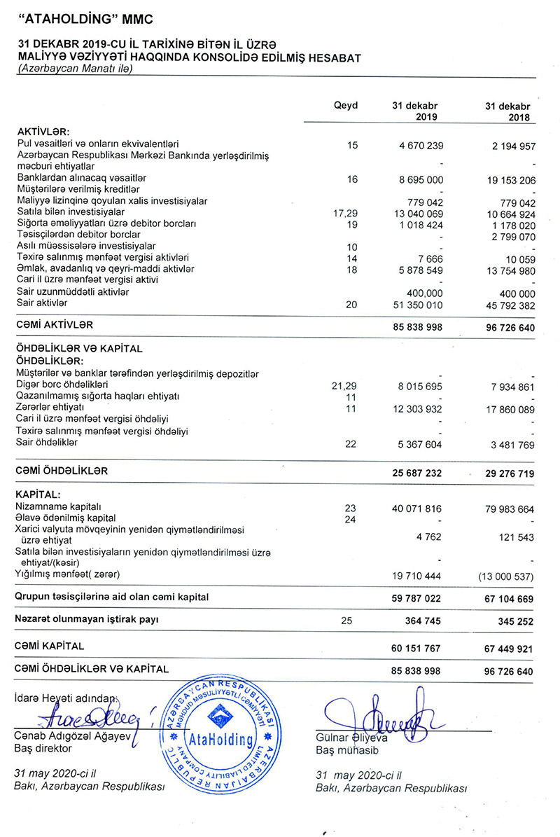 “Ata Holdinq” MMC 2019-cu ili 32 milyon 710 min manat xalis mənfəət ilə başa vurub. Halbuki, şirkət 2018-ci ili 8 milyon 725 min manat zərər ilə bağlamışdı.