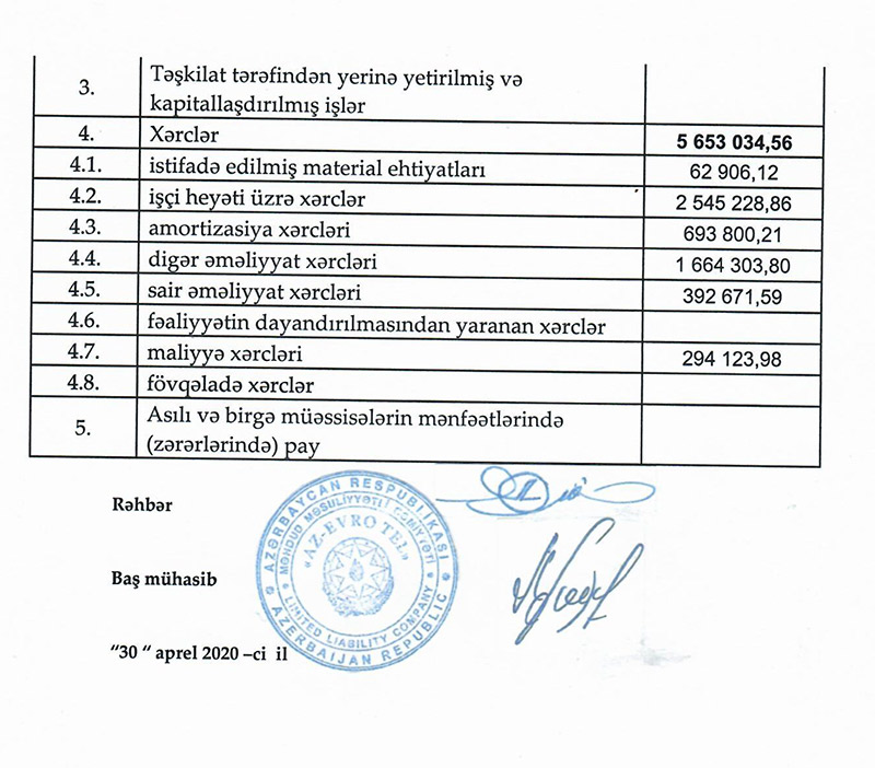 Şirkətin "digər əməliyyat xərcləri" 2 milyon 609 min manatdan 1 milyon 664 min manata düşüb.