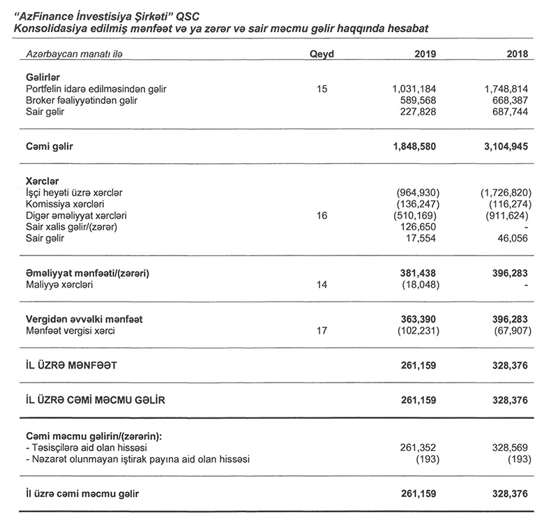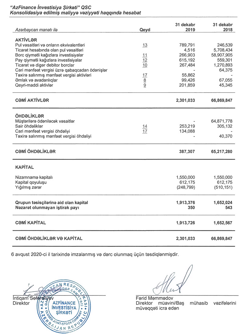 “AzFinance” İnvestisiya şirkəti “PricewaterhouseCoopers” beynəlxalq audit şirkəti tərəfindən təsdiqlənmiş və beynəlxalq maliyyə hesabat standartlarına (MHBS) cavab verən 2019-cu il üzrə maliyyə hesabatını açıqlayıb.