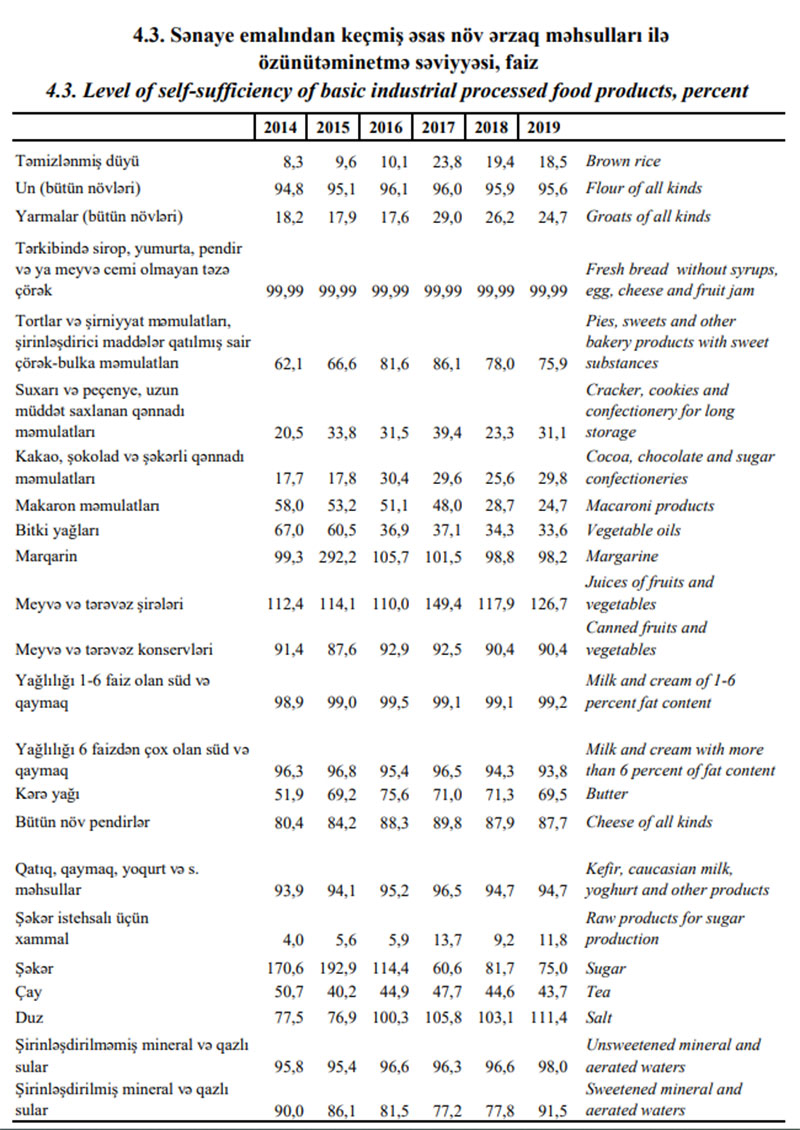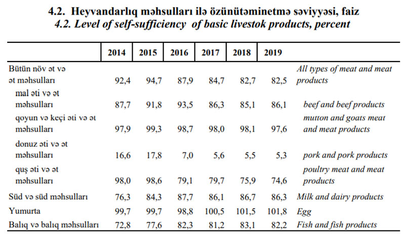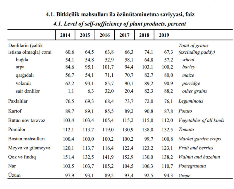 Azərbaycanın bitkiçilik, heyvandarlıq və əsas ərzaq məhsulları ilə özünütәminetmә sәviyyәləri açıqlanır.
