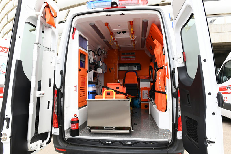 “Ford Transit” bazasında təcili tibbi yardım avtomobilləri isə ana xərək və döşək, sovurma avadanlığı, oksigen balonu və s. ilə təchiz edilib.