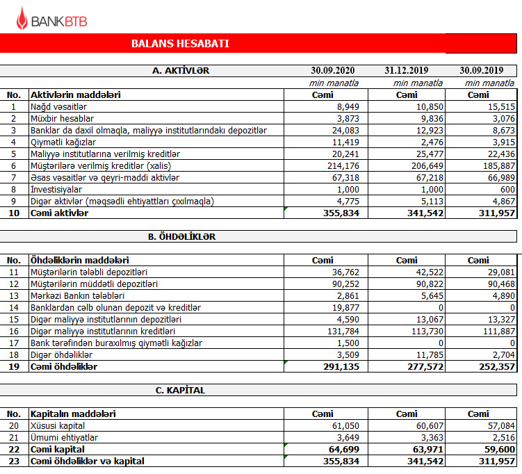 Qeyd edək ki, Bank BTB 2020-ci ilin 9 ayını 442 min manat xalis mənfəət ilə başa vurub.