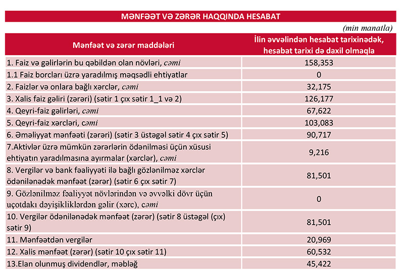 Azərbaycanın iri bankı 60,5 milyon manat xalis mənfəət açıqladı