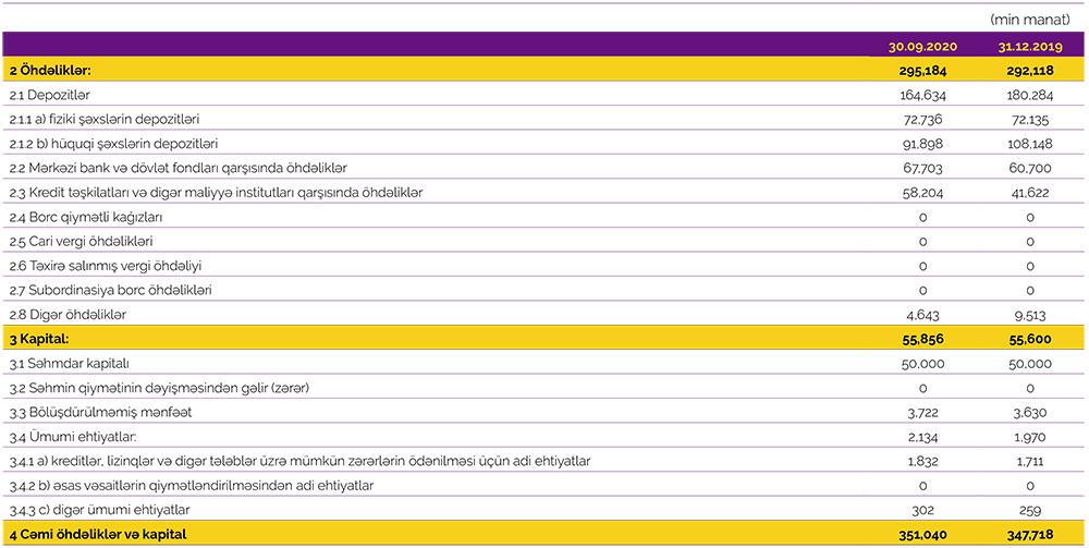 30 Sentyabr 2020-ci il tarixində Azər-Türk Bank 50 milyon 67 min manat məcmu kapitala malik olub.