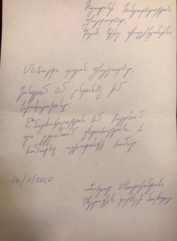 Baş nazir Nikol Paşinyan Z.Mnatsakanyanın istefa ərizəsini qəbul edib.