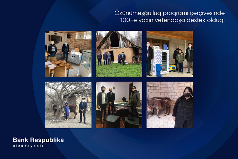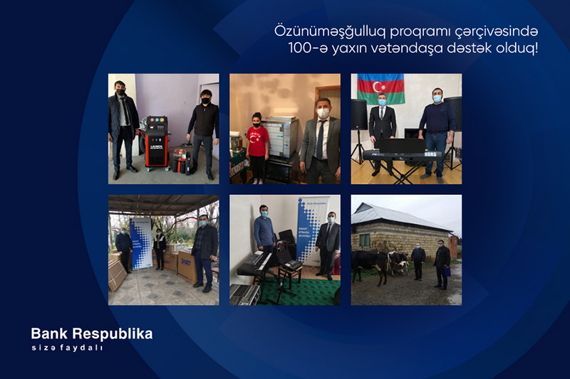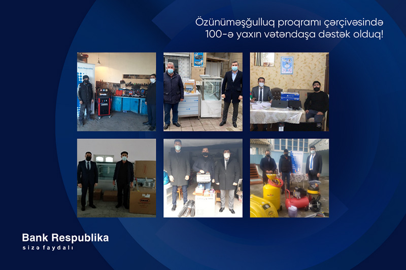 Qeyd edək ki, Bank Respublika cari ildə Özünüməşğulluq proqramı çərçivəsində 71 nəfər vətəndaşın özünüməşğulluğunun təşkili istiqamətində öz dəstəyini göstərib.