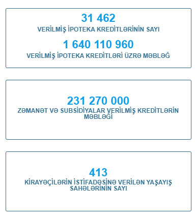 Bu günə qədər İpoteka və Kredit Zəmanət Fondu 31 462 borcalana 1 milyard 640 milyon 11 milyon manat məbləğində ipoteka krediti verib.
