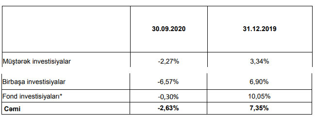 2020-ci ilin 9 ayı ərzində əmlak portfelinin gəlirlilik göstəricisi -2,63% təşkil etmişdir.