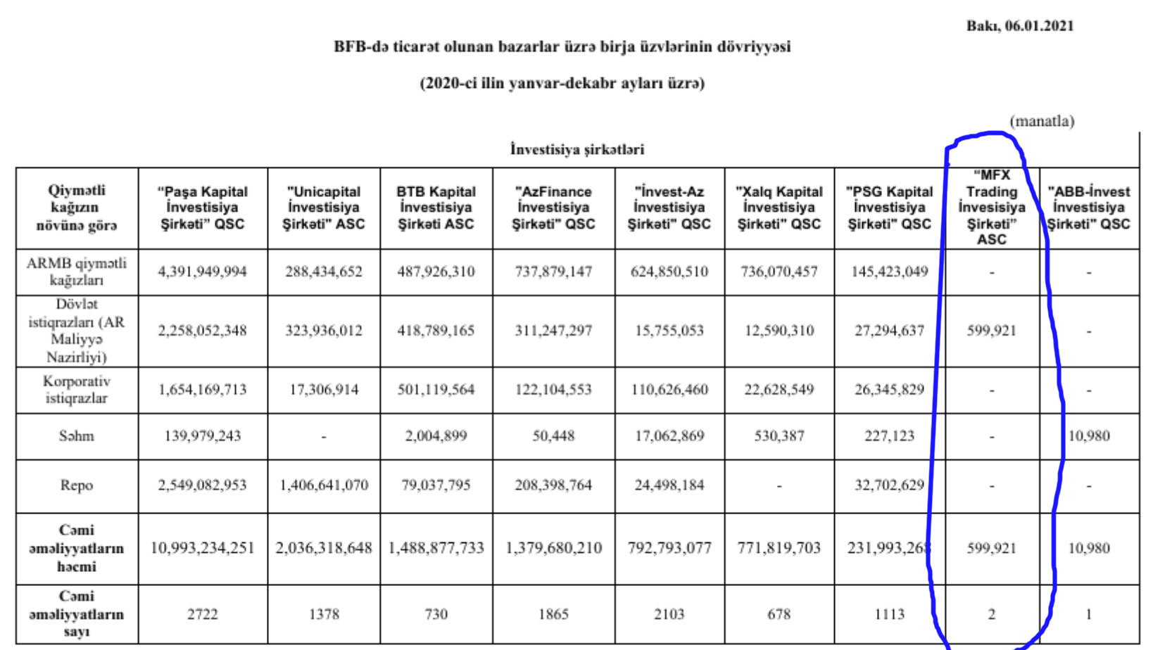 Məlumata görə, maliyyə qurumu dekabrda dövlət istiqrazları bazarında 599 min 921 manat dəyərində 2 əməliyyat aparıb.