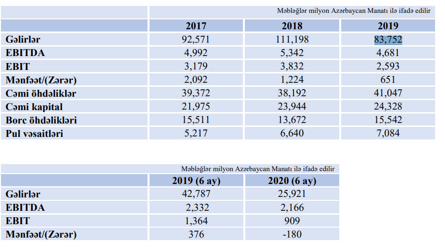 Marja şirkətin məlumatına istinadən xəbər verir ki, 2019-cu ilin 6 ayında 42 milyard 787 milyon manat təşkil etmiş cəmi gəlirlər 2020-ci ilin 6 ayında 25 milyard 921 milyon manata geriləyib.