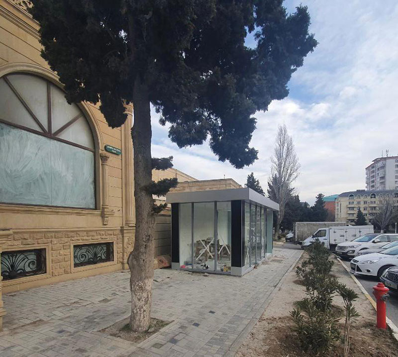 Komitənin mütəxəssisləri tərəfindən dərhal yerində baxış keçirilərək müəyyən olunmuşdur ki, ticarət köşkü qeyd edilən ünvanda səki üzərində şəhərsalma qanunvericiliyinə və normalarına riayət edilmədən, zəruri razılaşdırılma və icazə prosedurları həyata keçirilmədən quraşdırımış, bununla da piyadaların gediş-gəlişinə maneə yaradılmışdır.