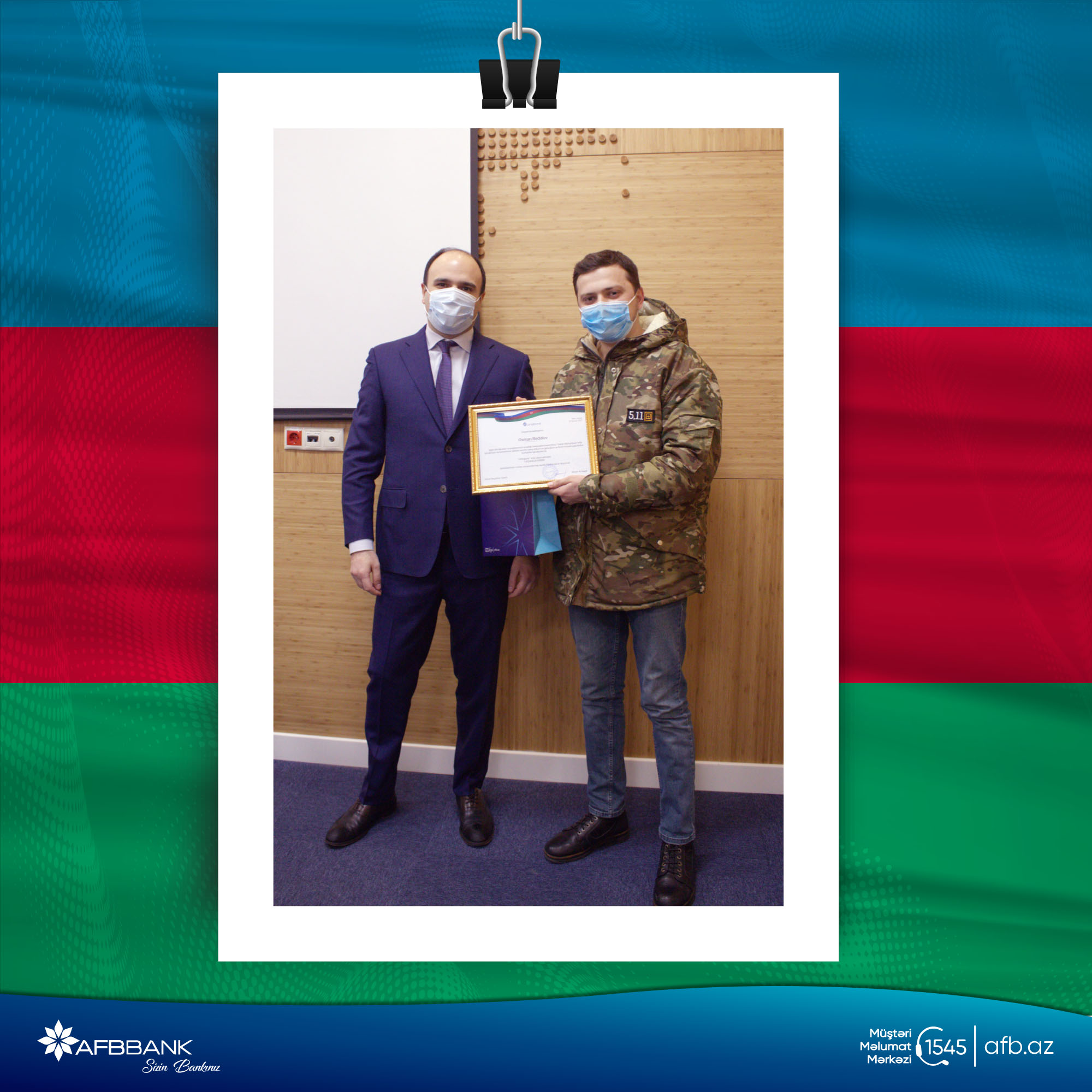 “Bankımızın Sizin kimi vətənpərvər və qəhrəman əməkdaşlarının olması bizi qürurlandırır. Sizinlə fəxr edir və Sizin timsalınızda bütün “Vətən Müharibəsi” iştirakçılarına öz təşəkkürmüzü bildiririk. Torpaqlarımızın azadlığı uğrunda həyatını fəda edən Şəhidlərimizə Allahdan rəhmət və ailələrinə, doğmalarına səbr diləyirik.”