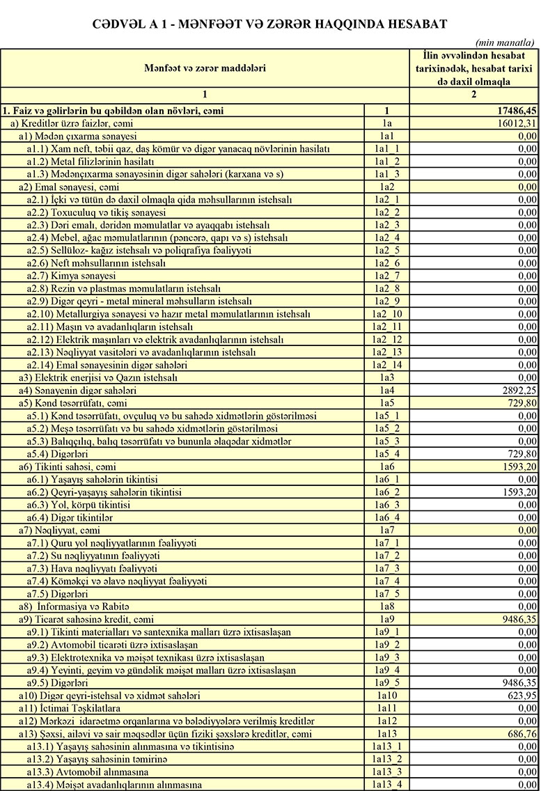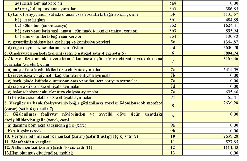 Ötən il Bankın faiz gəlirləri 356 min manat, qeyri-faiz gəlirləri isə 2 milyon 551 min manat artıb.