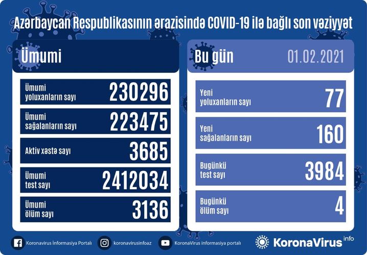 Qeyd edək ki, 31 Yanvar 2021-ci il tarixində 153 yoluxma faktı qeydə alındığı açıqlanmışdı.