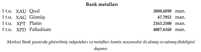 Mərkəzi Bank 2026-cı ilin ilk iş gününün rəsmi məzənnəsini açıqladı