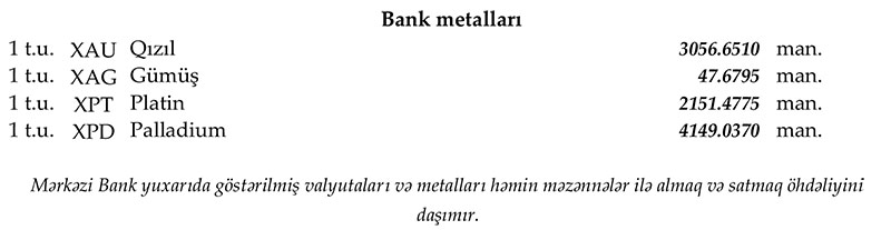 Rəsmi məzənnələr açıqlandı