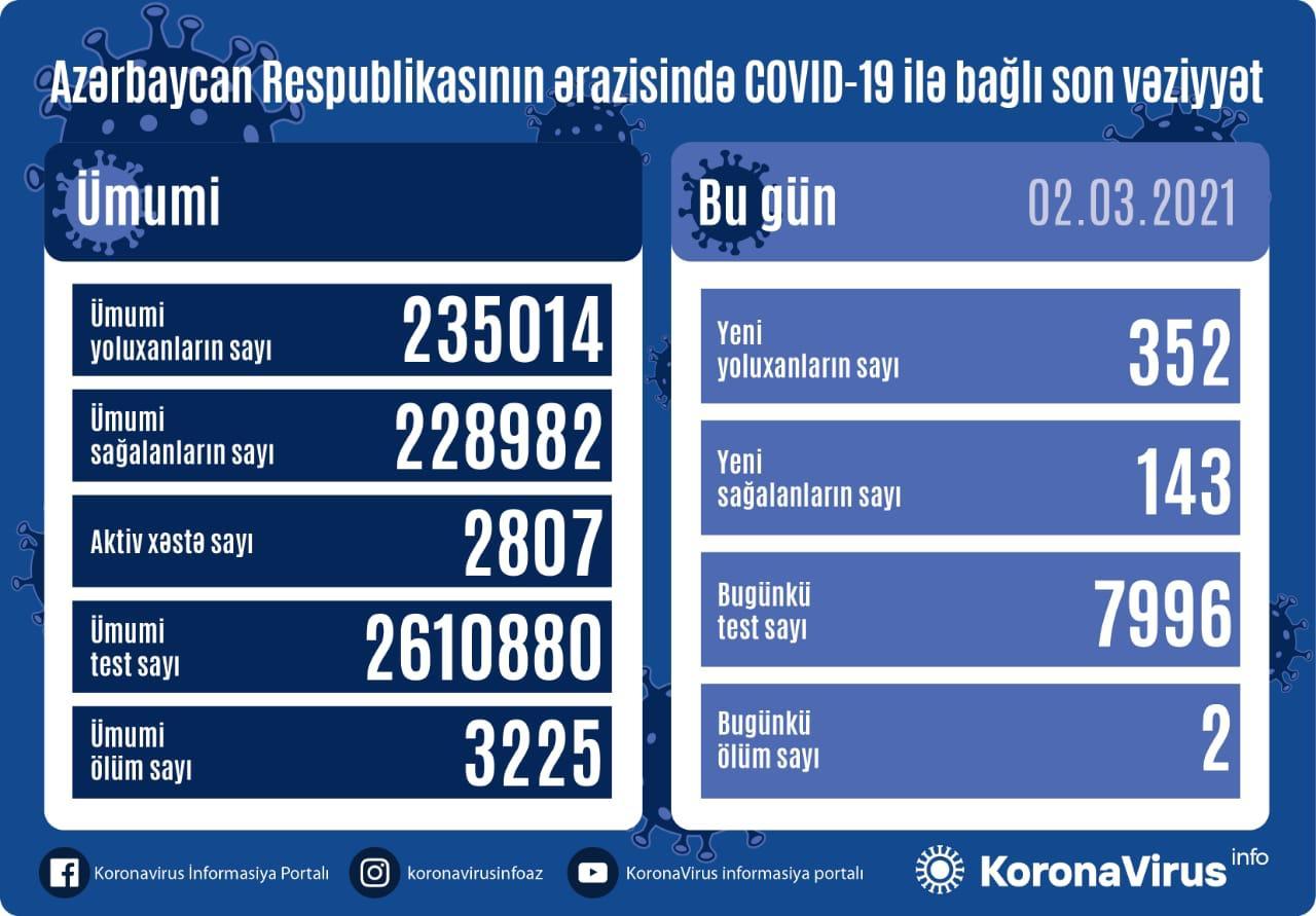 Qeyd edək ki, 01 Mart 2021-ci il tarixində 125 yoluxma faktı qeydə alındığı açıqlanmışdı.